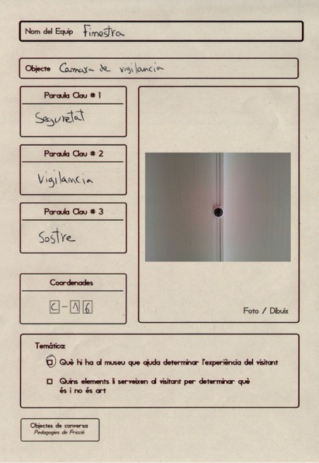 Vam omplir les fitxes amb la informació i les fotografies dels objectes i vam escriure un missatge enigmàtic dirigit als altres dos grups, que en una altra sessió, ells haurien de trobar i respondre'ns amb nous objectes, seguint el mateix procés.