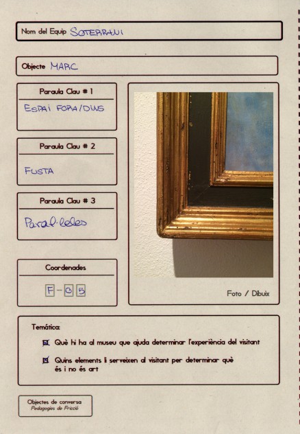 El taller consistia en identificar objectes no artístics del museu amb l'ajuda del material que ens havien proporcionat, els quals havien de respondre a alguna de les següents premisses: